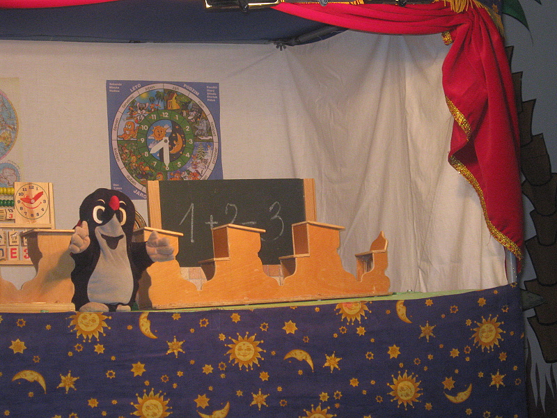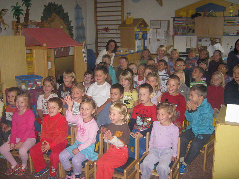 Počátkem měsíce října naší školku opět navštívilo divadlo,tentokrát z Olomouce,s pohádkou "Krtek a škola".V tento den nás také navštívili žáci 1. ročníků ze ZŠ 710 z Bučovic.Pohádka byla zaměřená na kamarádské vztahy a zdvořilostní návyky.Po pohádce jsme si společně povídali a hráli si.Celé dopoledne uteklo jako voda a my se budeme těšit na další takové!