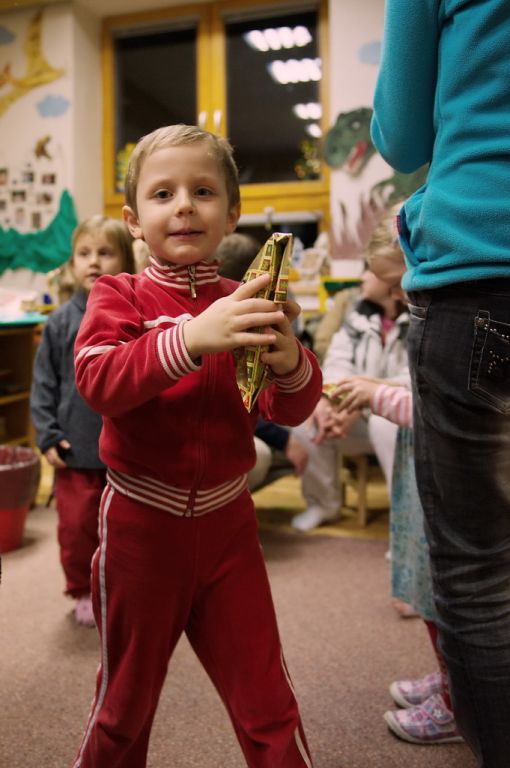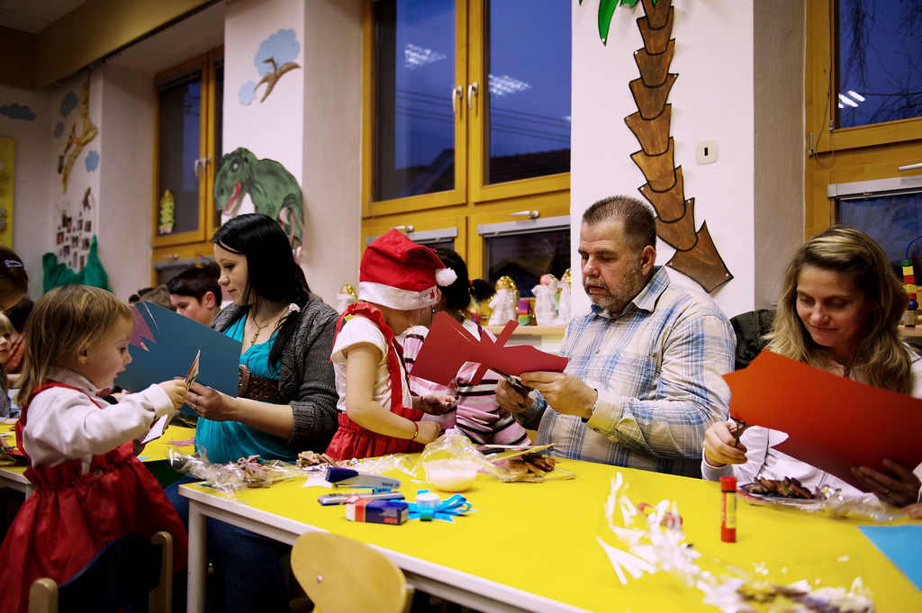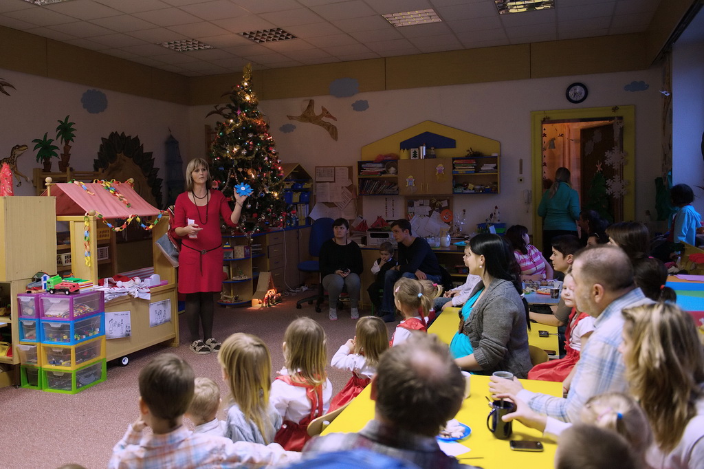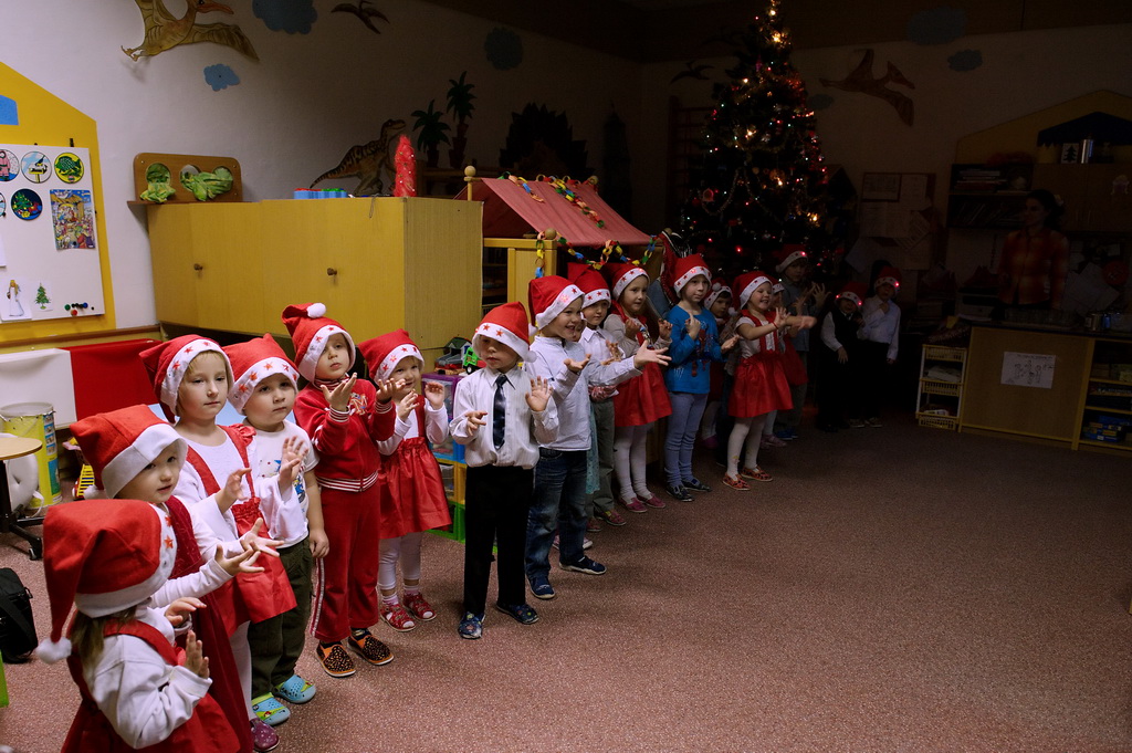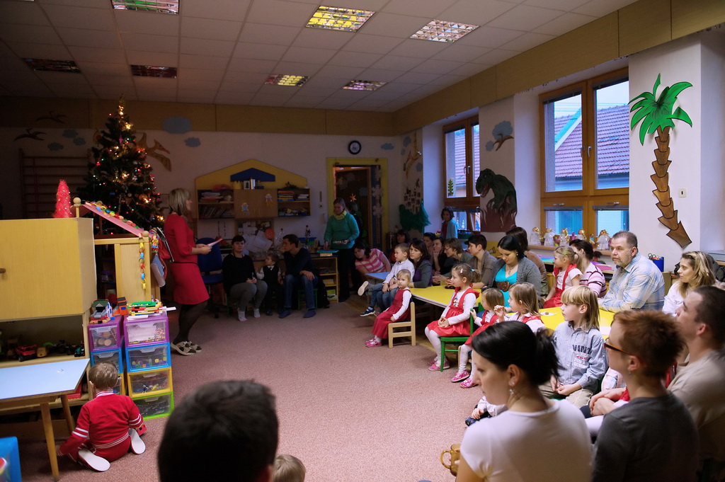 Ve středu 19.12. jsme pozvali rodiče na poslední společné odpoledne v tomto kalendářním roce ,a to na"Vánoční posezení".Děti, ustrojené v červeno - bílých oděvech,předvedly krátké vánoční pásmo a darovaly svým blízkým připravené dárečky a přáníčko.Po malém občerstvení,které připravili zaměstnanci MŠ a rodiče,si mohla každá rodina vyrobit vánoční ozdobu.Práce šla všem pěkně od ruky .Po úklidu třídy jsme se všichni přesunuli ven,kde nás čekalo překvapení.Pan Macourek nám přichystal ohňostroj.Tímto mu ještě jednou moc děkujeme.Po návratu do školky čekala na děti pod stromečkem osobní i společná nadílka .Po prohlédnutí všech dárků se všichni pomalu odebírali ke svým domovům.Věřím,že alespoň většina zúčastněných odcházela s příjemným vánočním naladěním.Děkujeme maminkám za v pohoštění.