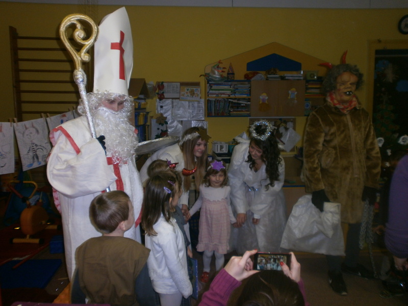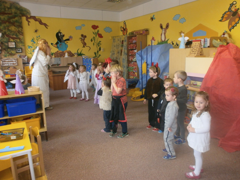 Děti se na příchod Mikuláše,čerta a anděla náležitě připravily.A stálo to za to!Všechny děti obdržely něco dobrého a čert nikoho neodnesl!